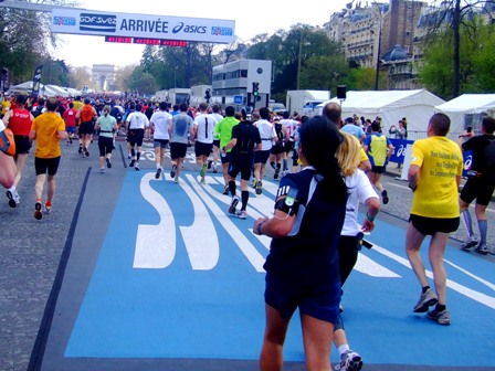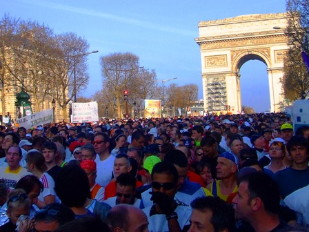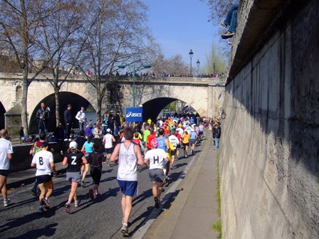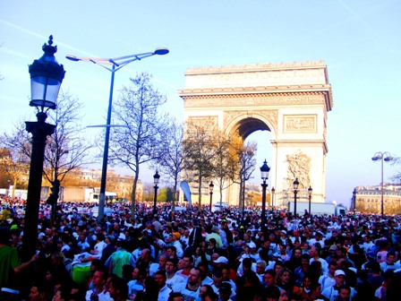 Paris gehört den Marathonis!!!! 4. Marathon!! 42 mal 42 werde ich das noch schaffen????!!!! Am 11.4. 2010 liegt die Hauptstadt Frankreichs im Marathonfieber!!!!!! Bei angesagten Frühlingstemperaturen stehen wir mit weiteren 40 000 Läufern in Plastik verhüllt fröstelnd im eisigen Wind am Start. Wie wird es heute laufen, schaffen ich die Strecke oder schafft die Strecke mich???? Euphorie, Kampfgeist u Schmerz werden meine Begleiter sein. Die Gefühle fahren mit mir Achterbahn!! Alleine (Ingo startet in einem anderen Startblock) mache ich mich mit vielen anderen "Leidgenossen" auf die lange Strecke. Ein sonniger Frühlingstag u eine abwechslungsreiche Strecke mit vielen Sehenswürdigkeiten liegen vor uns. Im Anschluß ein Bildermarathon in schnellen Schritten durch Paris!! (Ursel) (Bilder von Erwin Bittel u Daniela Lordt) ![]()