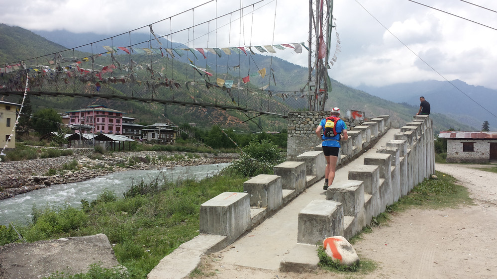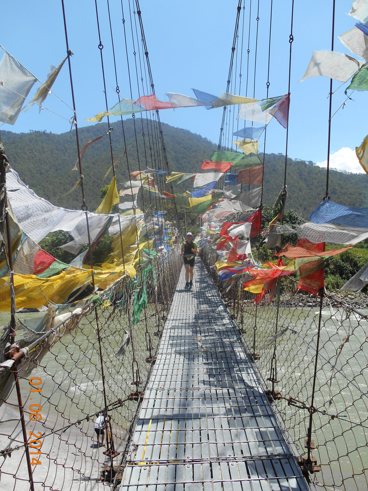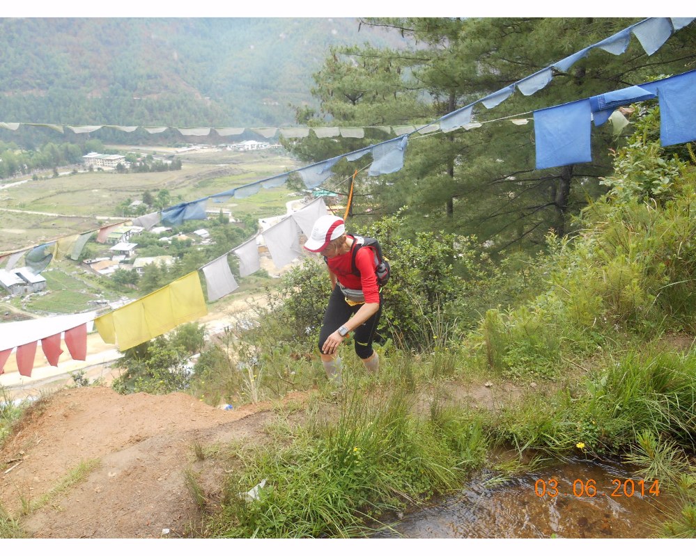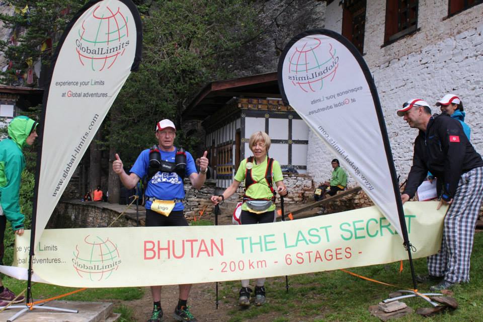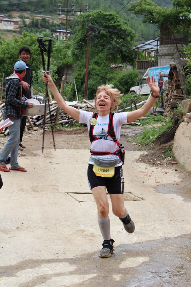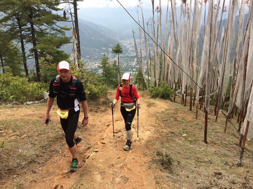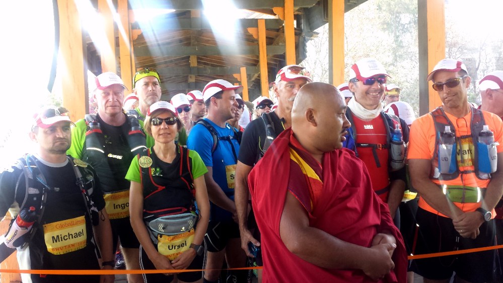 Laufabenteuer im Königreich Bhutan, 30.05. 07.06.2014 Auf der Suche nach neuen sportlichen Herausforderungen entdecken wir im Internet GlobalLimits. Stefan Betzelt aus Wiesbaden, Gründer und Manager von GlobalLimits ist selbst Ultraläufer und bietet seit 2012 Etappenläufe im asiatischen Raum an. Bhutan- The Last Secret, 200km in 6 Etappen hat uns mit den faszinierenden Fotos sofort begeistert. Schon lange wollen wir uns das kleine Königreich im Himalaya ansehen. Joggend Land und Leute kennen zu lernen, das war allerdings eine ganz neue und faszinierende Idee. Bhutan liegt im östlichen Himalaya zwischen Indien und Tibet. Der Buddhismus ist allgegenwärtig, die Religion bestimmt das Leben und die Einstellung der Menschen. Flatternde Gebetsfahnen, Gebetsmühlen, Klöster, rot gekleidete Mönche und eine einzigartige Landschaft sind unsere Wegbegleiter. ![]() ![]() Stefan Betzelt wird vor Ort mit einem Orga- und Ärzteteam den Lauf managen und uns mit Rat und Tat zur Seite stehen. 30,6km / 28,7/ 28,3/ 37,0km/ 52,7km 14,6km müssen bewältigt werden. 10.000Hm hoch und 8000Hm runter ![]() Die Logistik beginnt schon zuhause beim Packen, eine vorgeschriebene Ausrüstung, Energieriegel, Gel ,Snacks oder was der Läufer bevorzugt (man war Selbstversorger während des Laufens), Schlafsack, Isomatte, Funktionskleidung, Laufrucksack , Regenbekleidung und ein Notfallpaket(Medizin) ![]() Übernachtet wird fern von jeglicher Zivilisation, in Zelten, Klöster und Bauernhöfen. Maximal 8 kg sind erlaubt, denn das Gepäck wird von Trägern/Maultieren von einem Camp zum anderen transportiert. Der Flug von 8 Std. führt von Frankfurt nach Delhi, Katmandu nach Paros. ![]() Es klappt alles reibungslos, in Paro werden wir abgeholt, der Bus -Transfer folgt ins Pedling Hotel nach Thimphu. Mit einem Tashi Delek werden wir begrüßt! ![]() Am gleichen Abend wird noch vor dem Abendessen Ausrüstung und das Gewicht des Gepäcks akribisch geprüft. ![]() Ausgehändigt bekommen wir Streckenprofile, Namensschilder, Mütze und GlobalLimits Aufkleber. Danach ist gemeinsames Abendessen und erstes Kennenlernen! Am anderen Morgen verlassen wir das Hotel. ![]() Zur ersten Höhenaklimatisierung fahren wir zur Besichtigung von 108 Stupas auf einen Pass von 3050Hm . Danach geht es zu unserem ersten Zelt- Camp an einem Fluss. ![]() Das Abenteuer beginnt. Wir richten uns im Zelt ein und von nun an verlassen wir die Komfortzone und tägliche Katzenwäsche am Fluss oder an einem Wasserschlauch ist angesagt! ![]() ![]() 6 Etappen, 200km warten auf uns, am Abend davor findet jeweils durch Stefan ein Racebriefing statt. Bei jeder Etappe sind 3 Kontrollpunkte eingerichtet. Frühes Schlafen vor jedem Lauf ist für alle selbstverständlich. 1. Etappe Start 8 Uhr Das Rennen beginnt in einer schönen Festung in Bhutan, Punakha Dzong mit einer sehr emotionalen Zeremonie. 500 Schüler singen die Nationalhymne des Königsreichs Bhutan und ein Lama aus dem Kloster betet und segnet uns Läufer. ![]() ![]() Es ist unglaublich bewegend, es entsteht Gänsehautfeeling. Mit 35 Laufbegeisterten aus 16 Nationen werden wir gemeinsam laufen, staunen, leiden und eine faszinierende Landschaft erleben. Start ist auf der Holzbrücke der Festung, 31km müssen wir heute unter die Schuhsohlen nehmen. Motiviert bis an die Haarspitzen trotzen wir der Hitze von über 30 Grad. Alle 10km können wir an den Checkpoints unsere Wasserflaschen nachfüllen. Die Landschaft ist sehr abwechslungsreich und der Strecke folgen wir durch orange Fähnchen und Pfeilen. Nicht immer einfach, durch die fantastische Landschaft und der Anstrengung ist man häufig abgelenkt und man vergisst darauf zu achten. So bekommen alle Etappen Schnitzeljagdcharakter. Gerade das hat mir persönlich sehr viel Spaß gemacht! Heute haben wir drei Flussüberquerung über schwankende Hängebrücken. Die Gebetsfahnen schwingen im Laufrhythmus mit. Nach einem kurzen Anstieg liegt unser Ziel in einem Klosterinnenhof. ![]() ![]() Eine Flasche Cola ist im Ziel obligatorisch und weckt die müden Glieder! Die 1. Etappe haben wir ohne Probleme geschafft! Wieder Zelteinrichten, ein Wasserschlauch für alle und ausruhen! ![]() ![]() ![]() Gemeinsames Abendessen in freier Natur und Racebriefing für den 2. Tag. 2 Etappe: 28,7km Start 7 Uhr Heute steht ein Berglauf bei angenehmen Temperaturen an. Die ersten 4km sind relativ flach, danach folgt bis km 19 ein steiler Passanstieg auf 3050 HM und ebenso ein steiler Abstieg über schmale Singletrails, Geröll und Wurzeln. Blutegel sind auf dieser Etappe bekannt und wir werden mit einer Mischung von Tabak und Salz ausgerüstet. Auf Grund des schönen Wetters bleiben wir aber von diesen "niedlichen" Tierchen gott sei Dank verschont! ![]() ![]() ![]() Landschaftlich grandios, aber durch Stolperfallen ist ein konzentriertes Laufen angesagt. Ziel war in einem Dorf. ![]() ![]() Unsere Übernachtung wird heute in einer Farm sein. Wir richten uns mit den deutschen Läufern in einem Raum ein. Schnarcher oder Nichtschnarcher das ist die Frage! Da helfen nur noch Ohropax zu einem erholsamen Schlaf! ![]() 3. Etappe 28,3km Start 6.30 Uhr Der Lauf führt uns zum Kloster Phajoding es ist das älteste und ärmste Kloster Bhutans auf 3600Hm. Die ersten 20 km sind relativ flach. Der Weg zum Kloster ist aber nur über einen extrem langen Anstieg zu erreichen. ![]() Gedanken wie der Kreuzweg Christi gehen mir durch den Kopf, es ist ein Höllenaufstieg der kein Ende finden will. ![]() ![]() Die Sonne brennt vom Himmel und es wird uns alles an Kräften abverlangt. Aber mit eisernem Willen kommen wir nach 9 Std. oben an. ![]() Die obligatorische Cola steht wieder bereit und eine Mittagsruhe haben wir uns redlich verdient. Am späten Nachmittag folgt ein versprochenes Fußballmatch mit den Mönchen, die 1 Jahr darauf trainiert haben. Die Mönche gehen als klare Sieger hervor! ![]() ![]() Freiluftbad und Gemeinschaftsübernachtung im kalten Gemäuer des Klosters. ![]() Eingepackt wie die