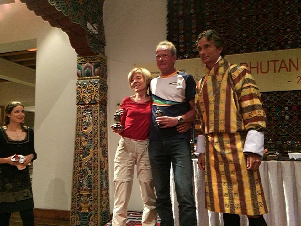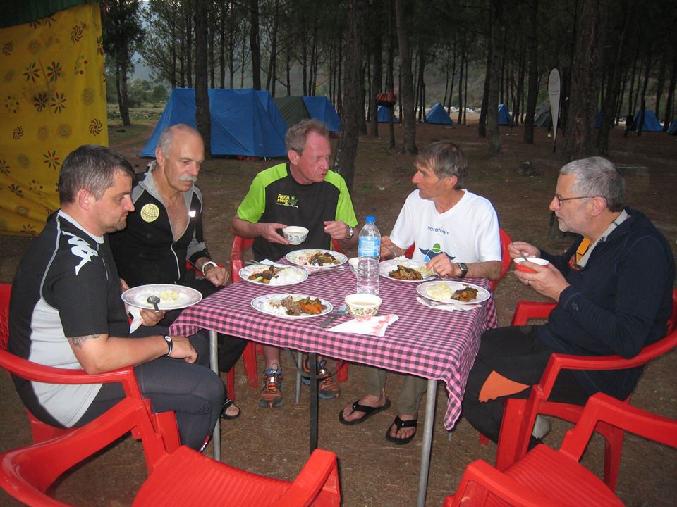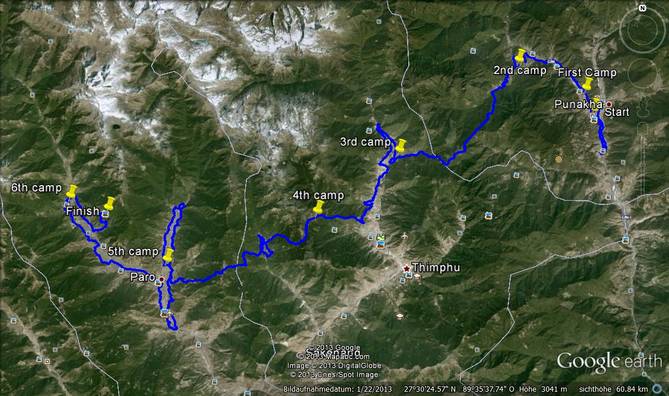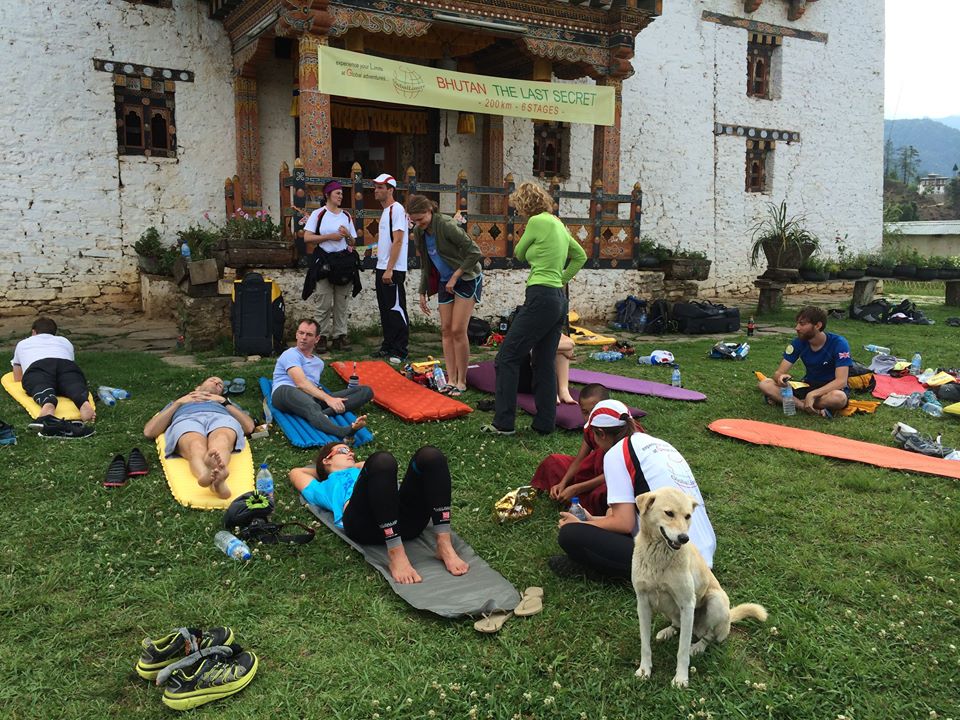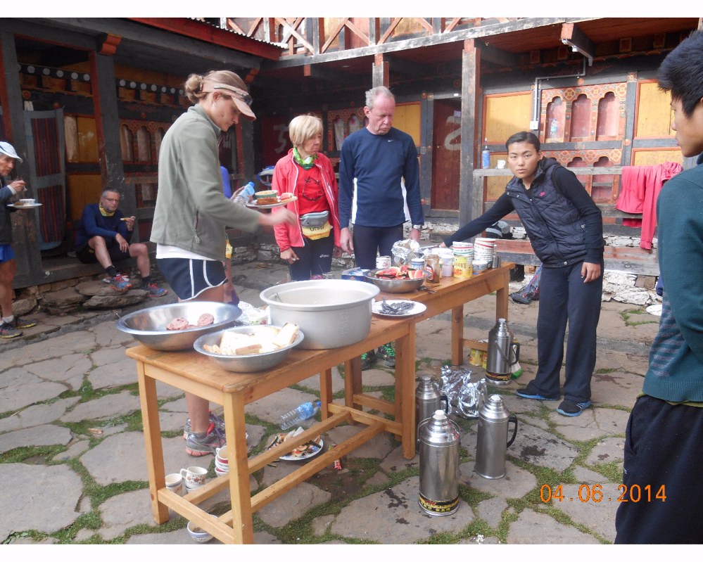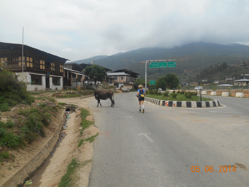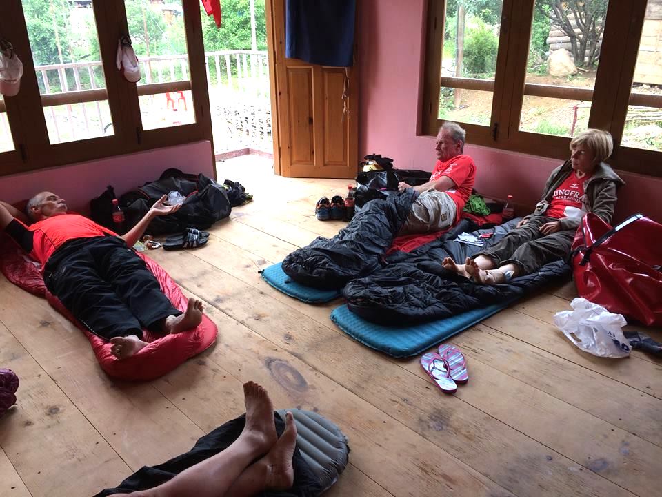 Laufabenteuer im Königreich Bhutan, 30.05. 07.06.2014 Auf der Suche nach neuen sportlichen Herausforderungen entdecken wir im Internet GlobalLimits. Stefan Betzelt aus Wiesbaden, Gründer und Manager von GlobalLimits ist selbst Ultraläufer und bietet seit 2012 Etappenläufe im asiatischen Raum an. Bhutan- The Last Secret, 200km in 6 Etappen hat uns mit den faszinierenden Fotos sofort begeistert. Schon lange wollen wir uns das kleine Königreich im Himalaya ansehen. Joggend Land und Leute kennen zu lernen, das war allerdings eine ganz neue und faszinierende Idee. Bhutan liegt im östlichen Himalaya zwischen Indien und Tibet. Der Buddhismus ist allgegenwärtig, die Religion bestimmt das Leben und die Einstellung der Menschen. Flatternde Gebetsfahnen, Gebetsmühlen, Klöster, rot gekleidete Mönche und eine einzigartige Landschaft sind unsere Wegbegleiter. ![]() ![]() Stefan Betzelt wird vor Ort mit einem Orga- und Ärzteteam den Lauf managen und uns mit Rat und Tat zur Seite stehen. 30,6km / 28,7/ 28,3/ 37,0km/ 52,7km 14,6km müssen bewältigt werden. 10.000Hm hoch und 8000Hm runter ![]() Die Logistik beginnt schon zuhause beim Packen, eine vorgeschriebene Ausrüstung, Energieriegel, Gel ,Snacks oder was der Läufer bevorzugt (man war Selbstversorger während des Laufens), Schlafsack, Isomatte, Funktionskleidung, Laufrucksack , Regenbekleidung und ein Notfallpaket(Medizin) ![]() Übernachtet wird fern von jeglicher Zivilisation, in Zelten, Klöster und Bauernhöfen. Maximal 8 kg sind erlaubt, denn das Gepäck wird von Trägern/Maultieren von einem Camp zum anderen transportiert. Der Flug von 8 Std. führt von Frankfurt nach Delhi, Katmandu nach Paros. ![]() Es klappt alles reibungslos, in Paro werden wir abgeholt, der Bus -Transfer folgt ins Pedling Hotel nach Thimphu. Mit einem Tashi Delek werden wir begrüßt! ![]() Am gleichen Abend wird noch vor dem Abendessen Ausrüstung und das Gewicht des Gepäcks akribisch geprüft. ![]() Ausgehändigt bekommen wir Streckenprofile, Namensschilder, Mütze und GlobalLimits Aufkleber. Danach ist gemeinsames Abendessen und erstes Kennenlernen! Am anderen Morgen verlassen wir das Hotel. ![]() Zur ersten Höhenaklimatisierung fahren wir zur Besichtigung von 108 Stupas auf einen Pass von 3050Hm . Danach geht es zu unserem ersten Zelt- Camp an einem Fluss. ![]() Das Abenteuer beginnt. Wir richten uns im Zelt ein und von nun an verlassen wir die Komfortzone und tägliche Katzenwäsche am Fluss oder an einem Wasserschlauch ist angesagt! ![]() ![]() 6 Etappen, 200km warten auf uns, am Abend davor findet jeweils durch Stefan ein Racebriefing statt. Bei jeder Etappe sind 3 Kontrollpunkte eingerichtet. Frühes Schlafen vor jedem Lauf ist für alle selbstverständlich. 1. Etappe Start 8 Uhr Das Rennen beginnt in einer schönen Festung in Bhutan, Punakha Dzong mit einer sehr emotionalen Zeremonie. 500 Schüler singen die Nationalhymne des Königsreichs Bhutan und ein Lama aus dem Kloster betet und segnet uns Läufer. ![]() ![]() Es ist unglaublich bewegend, es entsteht Gänsehautfeeling. Mit 35 Laufbegeisterten aus 16 Nationen werden wir gemeinsam laufen, staunen, leiden und eine faszinierende Landschaft erleben. Start ist auf der Holzbrücke der Festung, 31km müssen wir heute unter die Schuhsohlen nehmen. Motiviert bis an die Haarspitzen trotzen wir der Hitze von über 30 Grad. Alle 10km können wir an den Checkpoints unsere Wasserflaschen nachfüllen. Die Landschaft ist sehr abwechslungsreich und der Strecke folgen wir durch orange Fähnchen und Pfeilen. Nicht immer einfach, durch die fantastische Landschaft und der Anstrengung ist man häufig abgelenkt und man vergisst darauf zu achten. So bekommen alle Etappen Schnitzeljagdcharakter. Gerade das hat mir persönlich sehr viel Spaß gemacht! Heute haben wir drei Flussüberquerung über schwankende Hängebrücken. Die Gebetsfahnen schwingen im Laufrhythmus mit. Nach einem kurzen Anstieg liegt unser Ziel in einem Klosterinnenhof. ![]() ![]() Eine Flasche Cola ist im Ziel obligatorisch und weckt die müden Glieder! Die 1. Etappe haben wir ohne Probleme geschafft! Wieder Zelteinrichten, ein Wasserschlauch für alle und ausruhen! ![]() ![]() ![]() Gemeinsames Abendessen in freier Natur und Racebriefing für den 2. Tag. 2 Etappe: 28,7km Start 7 Uhr Heute steht ein Berglauf bei angenehmen Temperaturen an. Die ersten 4km sind relativ flach, danach folgt bis km 19 ein steiler Passanstieg auf 3050 HM und ebenso ein steiler Abstieg über schmale Singletrails, Geröll und Wurzeln. Blutegel sind auf dieser Etappe bekannt und wir werden mit einer Mischung von Tabak und Salz ausgerüstet. Auf Grund des schönen Wetters bleiben wir aber von diesen "niedlichen" Tierchen gott sei Dank verschont! ![]() ![]() ![]() Landschaftlich grandios, aber durch Stolperfallen ist ein konzentriertes Laufen angesagt. Ziel war in einem Dorf. ![]() ![]() Unsere Übernachtung wird heute in einer Farm sein. Wir richten uns mit den deutschen Läufern in einem Raum ein. Schnarcher oder Nichtschnarcher das ist die Frage! Da helfen nur noch Ohropax zu einem erholsamen Schlaf! ![]() 3. Etappe 28,3km Start 6.30 Uhr Der Lauf führt uns zum Kloster Phajoding es ist das älteste und ärmste Kloster Bhutans auf 3600Hm. Die ersten 20 km sind relativ flach. Der Weg zum Kloster ist aber nur über einen extrem langen Anstieg zu erreichen. ![]() Gedanken wie der Kreuzweg Christi gehen mir durch den Kopf, es ist ein Höllenaufstieg der kein Ende finden will. ![]() ![]() Die Sonne brennt vom Himmel und es wird uns alles an Kräften abverlangt. Aber mit eisernem Willen kommen wir nach 9 Std. oben an. ![]() Die obligatorische Cola steht wieder bereit und eine Mittagsruhe haben wir uns redlich verdient. Am späten Nachmittag folgt ein versprochenes Fußballmatch mit den Mönchen, die 1 Jahr darauf trainiert haben. Die Mönche gehen als klare Sieger hervor! ![]() ![]() Freiluftbad und Gemeinschaftsübernachtung im kalten Gemäuer des Klosters. ![]() Eingepackt wie die