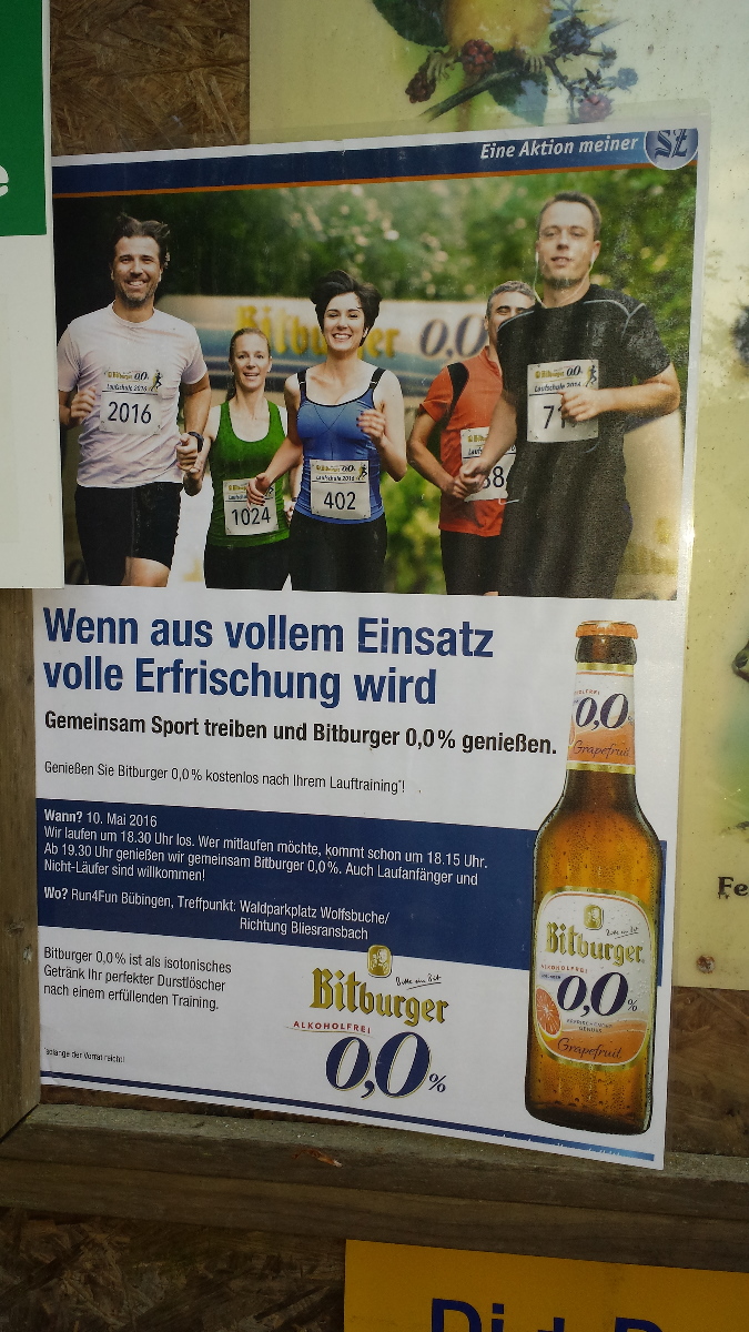 Auch in diesem Jahr durfte unser Lauftreff an der Aktion 0,0% von Bitburger in Zusammenarbeit mit der Saarbrücker Zeitung teilnehmen. Dabei besucht die Brauerei seit einigen Jahren die saarländischen Lauftreffs und stellt kostenlos die aktuellen alkoholfreien Getränke zum verkosten vor. Nach einer verkürzten Laufrunde trafen wir uns wieder an unserem Treffpunkt und konnten die diversen Geschmacksrichtungen probieren. Leider meinte es das Wetter in diesem Jahr nicht so gut mit uns, so dass nur sechzehn Läuferinnen, Läufer und Walker kamen. Denen hat es aber erneut rießen Spaß gemacht und wir wären gerne auch wieder im kommenden Jahr Gastgeber für Bitburger 0,0% und die SZ ... nachfolgend ein paar Impressionen: ![]() ![]() ![]() ![]() ![]() ![]() ![]() ![]() ![]() ![]() |