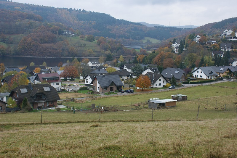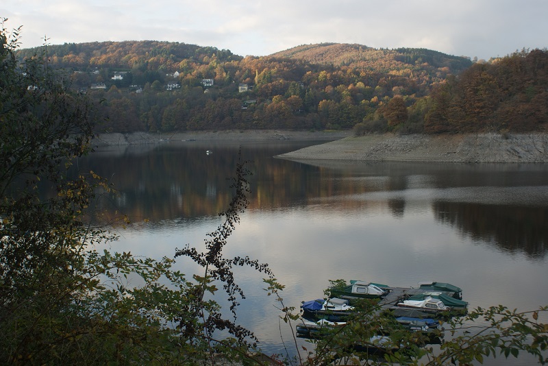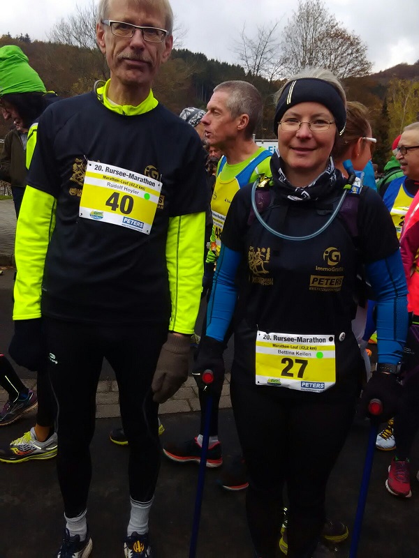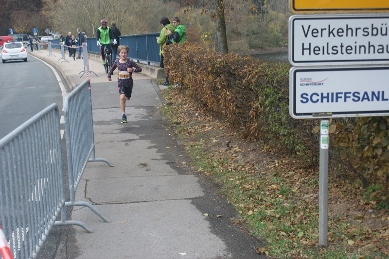 Anfang November fuhren Bettina, ihre Kinder und ich zum 20. Rursee-Marathon in die Nordeifel. Wir reisten am Freitagabend an und übernachteten in der Jugendherberge Rurberg, ganz in der Nähe des Startortes Einruhr. ![]() Der Rursee ist ein großer Stausee mit vielen kleinen Seitenarmen. Am Rande befindet sich der (mir zumindest wenig bekannte) Nationalpark Eifel ![]() Am Samstagvormittag wurde eine Wanderung mit einem Ranger in den Nationalpark angeboten. Die Wanderung vermittelte gut Eindrücke vom Nationalpark mit einem herbstlichem Wald und Blicken zurück nach Einruhr. ![]() ![]() Am Nachmittag fanden in Einruhr dann Kinderläufe und ein 5 km Lauf statt. Paul absolvierte den 2 km langen Schülerlauf, eine Wendepunktstrecke am Seeufer entlang. Er konnte den Lauf in 8:21 Minuten gewinnen. ![]() ![]() Am Sonntag wurde der Marathon und etwas früher auch ein Ultralauf über 52 km gestartet. Die Marathonstrecke folgt dabei meist dem Seeufer. Gestartet wird in Einruhr. Der See wird zunächst auf der östlichen Seite über die Urftsee-Staumauer bis Schwammenauel umrundet. Weiter geht es auf der nördlichen Seite bis zum Ort Rurberg. ![]() Von dort geht es auf der westlichen Seite zurück nach Einruhr. Es wird auf Ufer- und Waldwegen und kleinen Asphaltstraßen gelaufen. Zwischendurch folgen einige, zwar meist kurze aber steile, Anstiege, wenn die Strecke sich vom See entfernt. Nach Angaben eines anderen Läufers sind etwa 375 Höhenmeter zu überwinden. Bei wechselhaftem aber trockenem Wetter konnten wir eine schöne Strecke überwiegend durch den herbstlichen Wald genießen. Viele schöne Blicke auf den manchmal blau schimmernden See begleiteten uns. Bettina erreicht in guten 5:05 Stunden das Ziel, ich in 3:56 Stunden. ![]() |